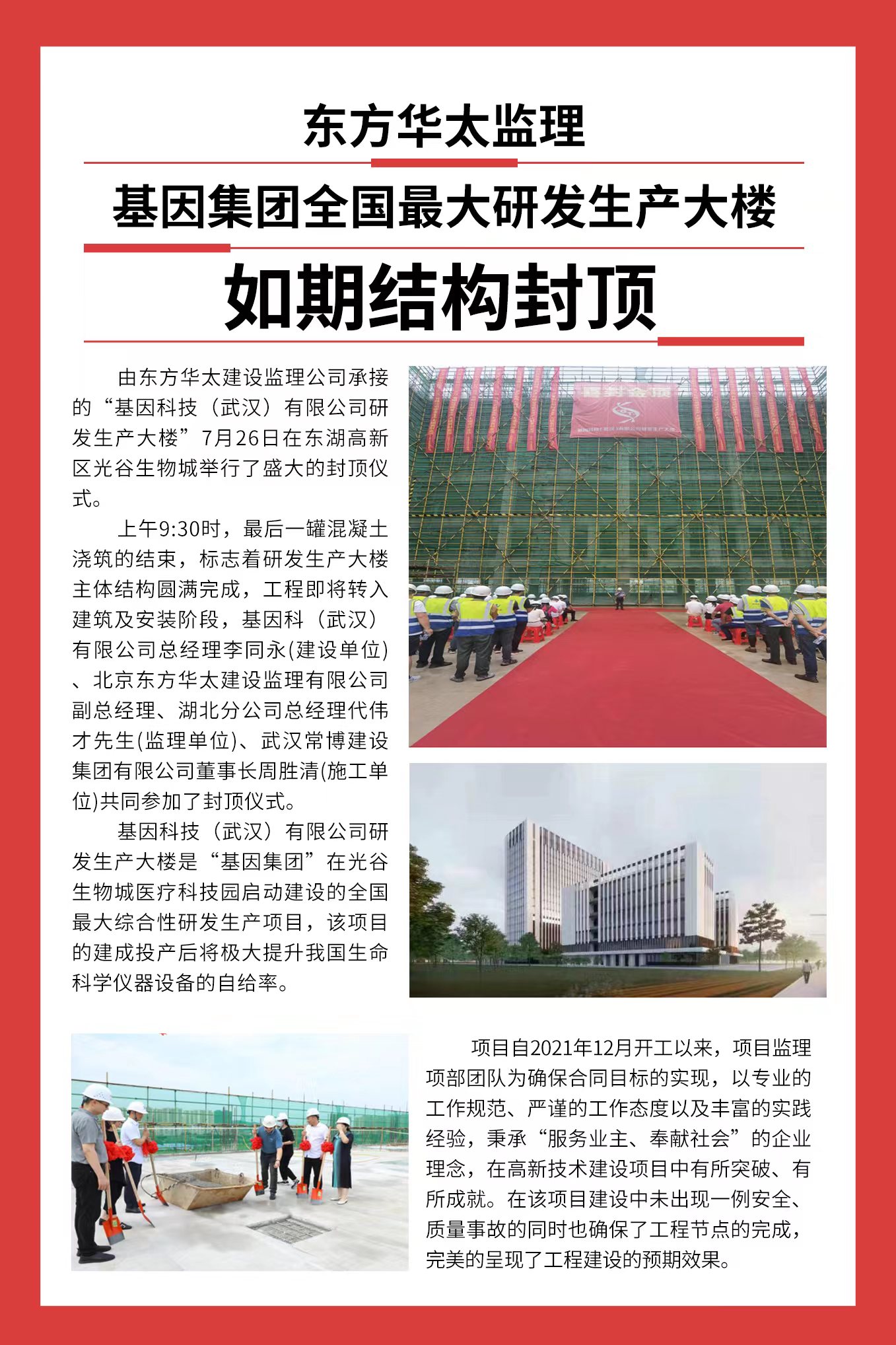 東方華太監(jiān)理 基因集團全國最大研發(fā)生產大樓 如期結構封頂